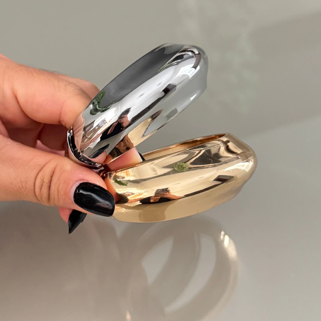 O bracelete ideal para quem ama acessórios que transformam look, com design grosso e moderno, perfeita para composições estilosas, trazendo presença e personalidade para ocasiões especiais.
