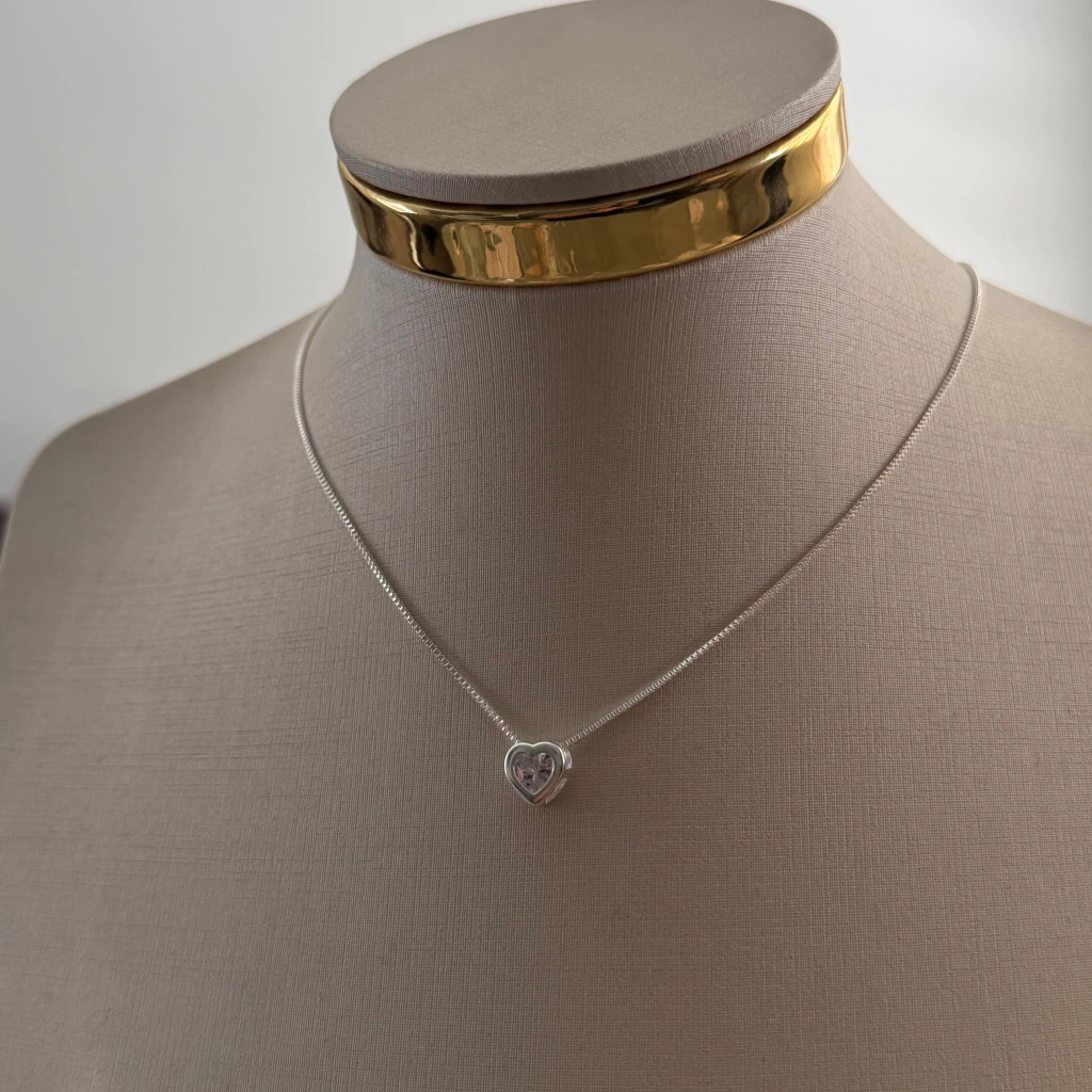 Colar ponto de luz coração prata semijoia