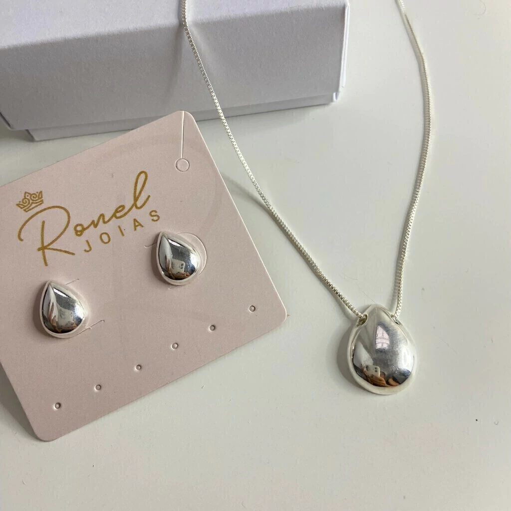 Nosso conjunto é composto por um par de brinco e um colar com pingente de gota lisa